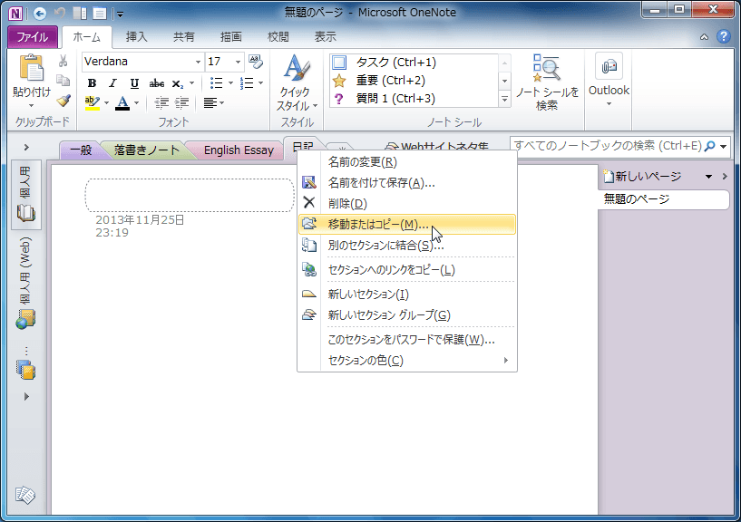 別のノートブックにセクションを移動する