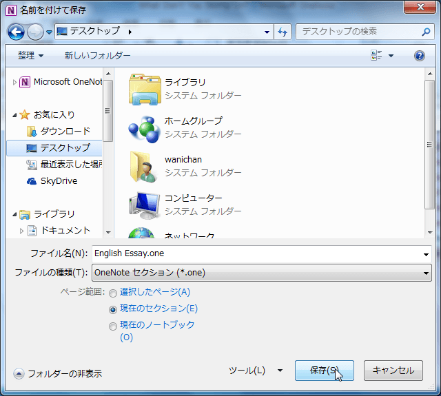 - [名前を付けて保存]ダイアログボックスの[ページ範囲]には[現在のセクション]が選択されていることを確認します。