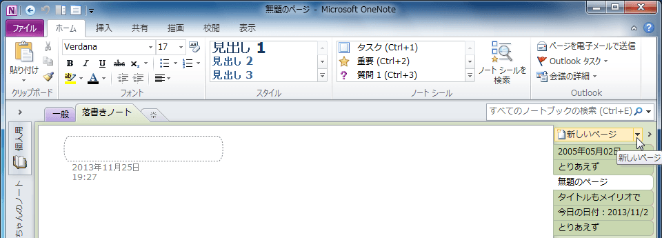 - ページタブの上の[新しいページ]の▼をクリックします。