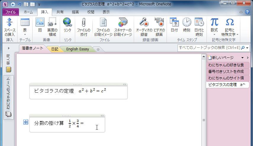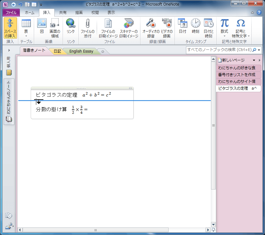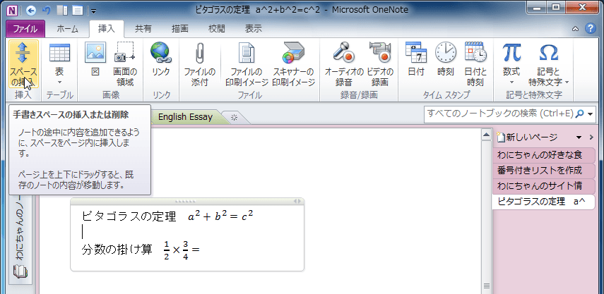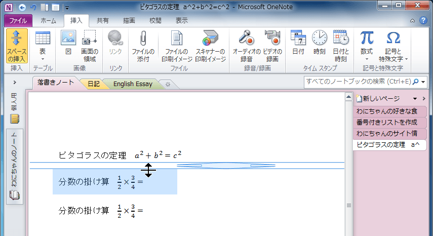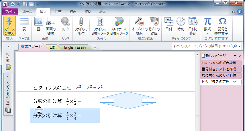 ノート用のスペースの挿入