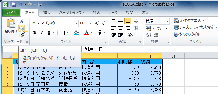 - とりあえず、Excelの表をコピーします。