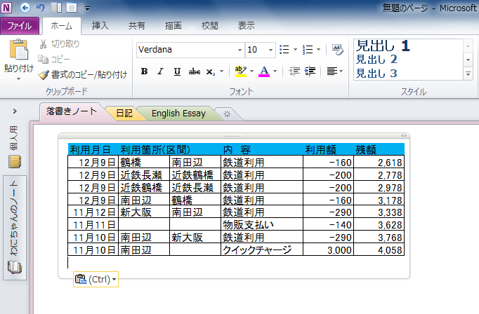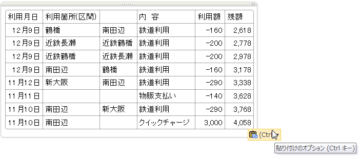 - ショートカットキー(Ctrl+V)で貼り付けたい場所に貼り付けます。