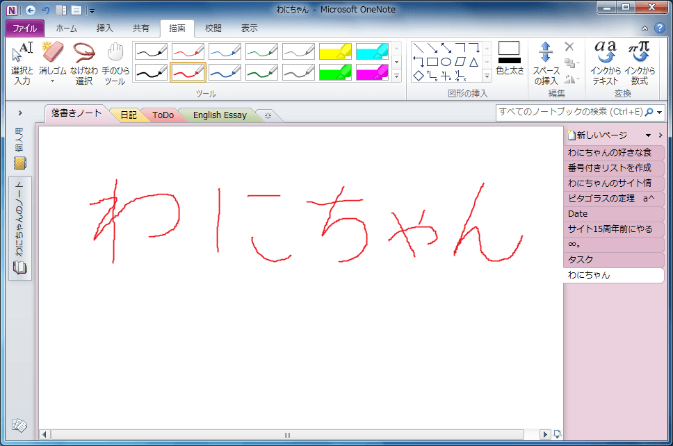 - ページ内に描くと、ページタブに手書き文字が認識されるようになります。