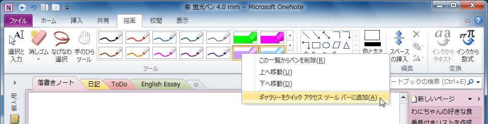 個々のお気に入りのペンをクイックアクセスツールバーに追加