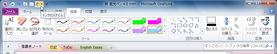 - クイックアクセスツールバーに[インクのスタイル]ボタンが追加されました。