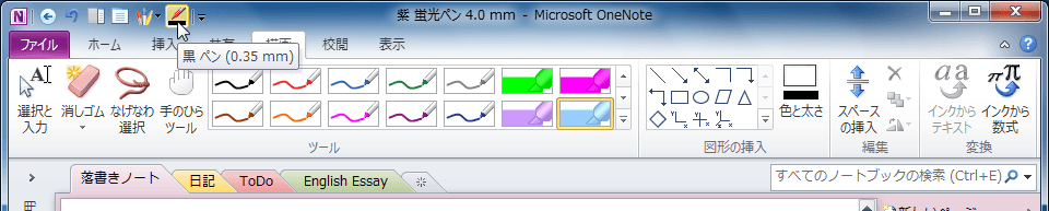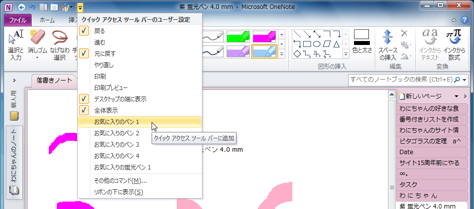 クイックアクセスツールバーにお気に入りのペンを追加するには