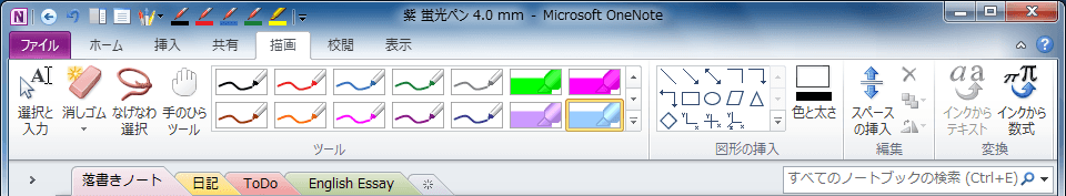 - 5つのペンをクイックアクセスツールバーに追加したときの画面は以下の通りです。