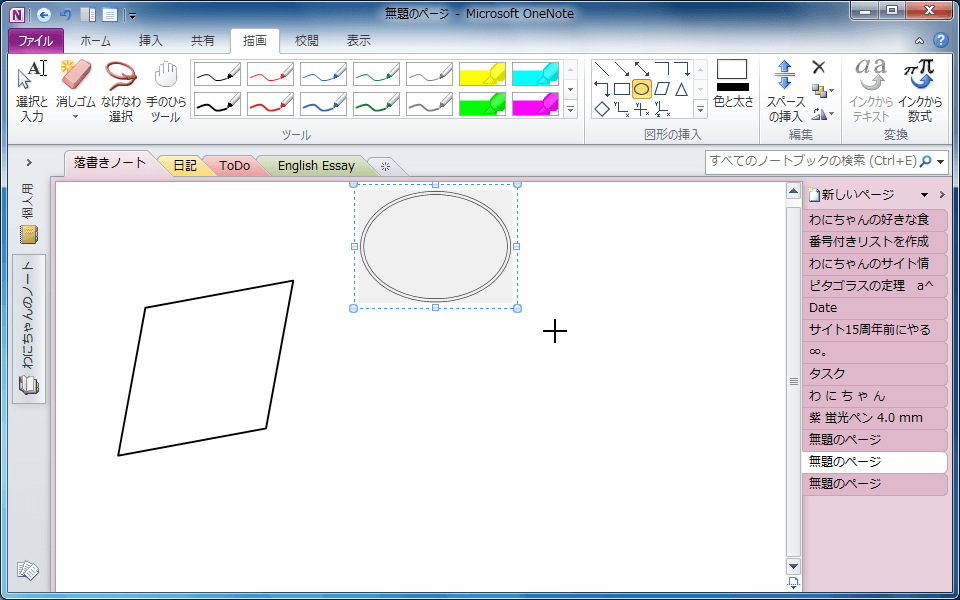 しかし、同じ図形を繰り返して描きたい場合や、入力モードに切り替えたくない場合は、描画モードをロックするとOKです。