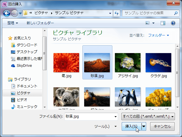 - 挿入したい画像ファイルを選択して[挿入]ボタンをクリックします。
