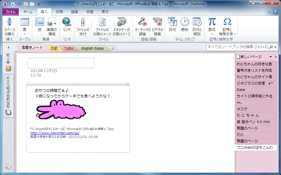 - OneNoteのページにそのスナップショットが挿入されました。