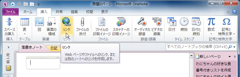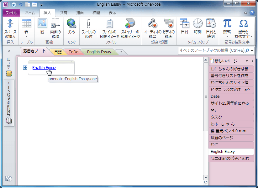 - OneNoteのセクションへのハイパーリンクが挿入されました。