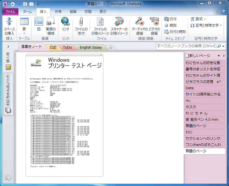- スキャナーが実行され、OneNoteのページに挿入されました。