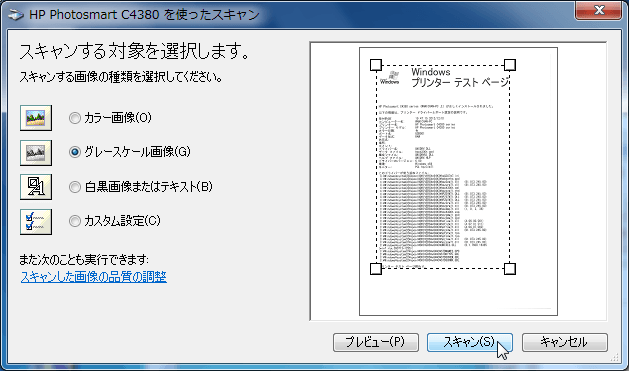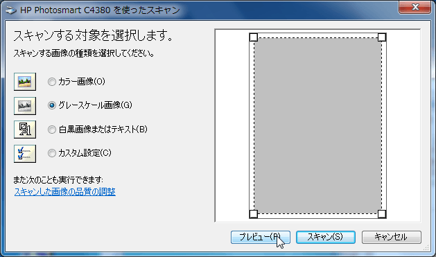 - スキャンする対象を選択して[プレビュー]をクリックします。