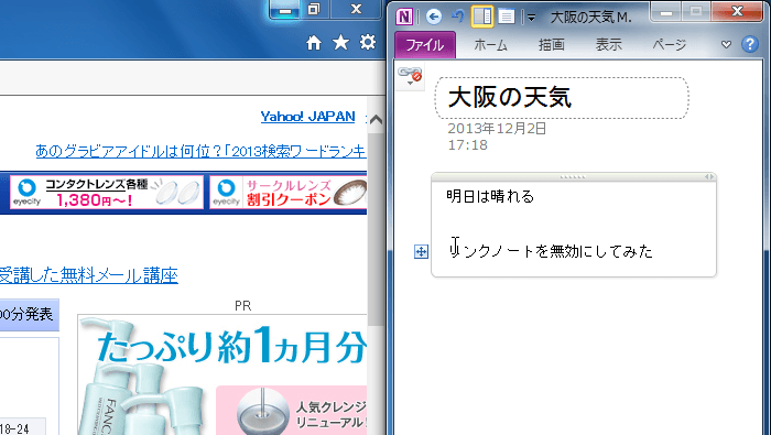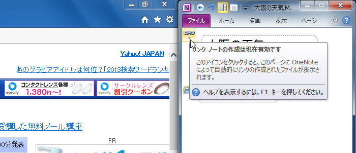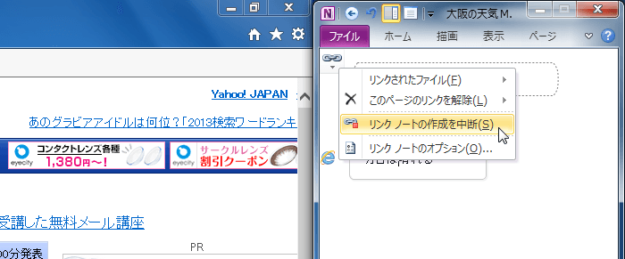 OneNote 2010でドッキングウィンドウのリンクノートの有効/無効のアイコンをクリックして、リンクノートの作成を中断できます。