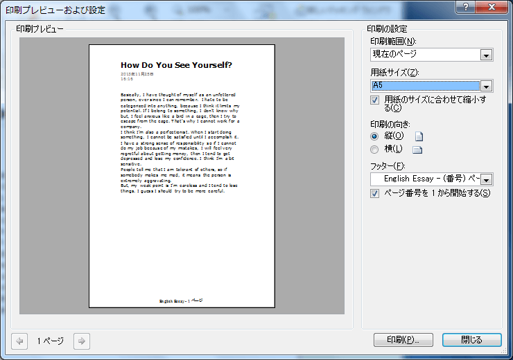 印刷プレビューおよび設定