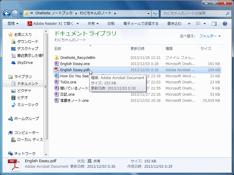- PDF形式で保存したファイルを開くと、PDFで開きました。