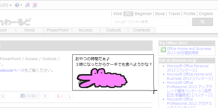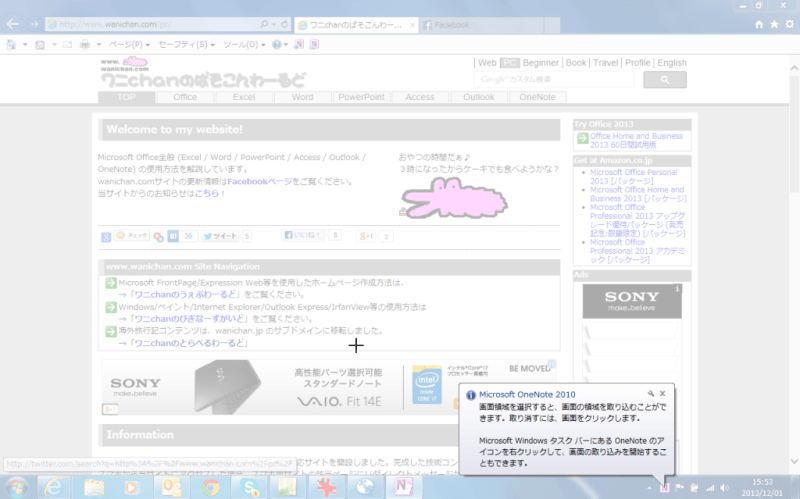 - OneNoteに取り込みたいWebページを表示します。
