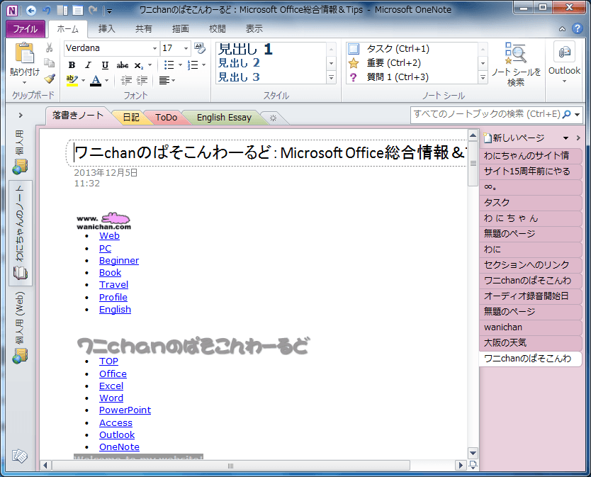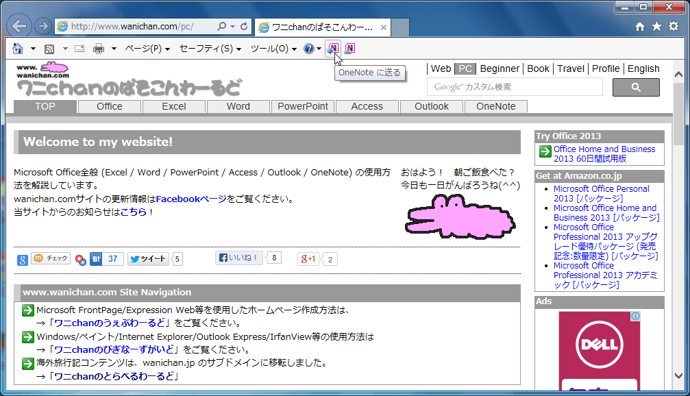 - OneNoteに送りたいWebページを表示します。