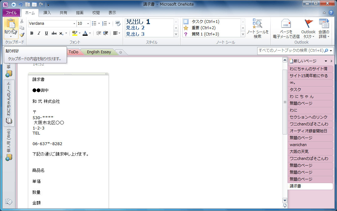 - 新しいページに貼り付けてみると、テキスト部分が貼り付けられました。