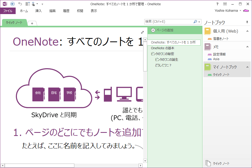 OneNote 2013の既定では、ナビゲーションバーは表示されませんが、『ナビゲーションバーを表示するには』を参考にして左に表示することができます。