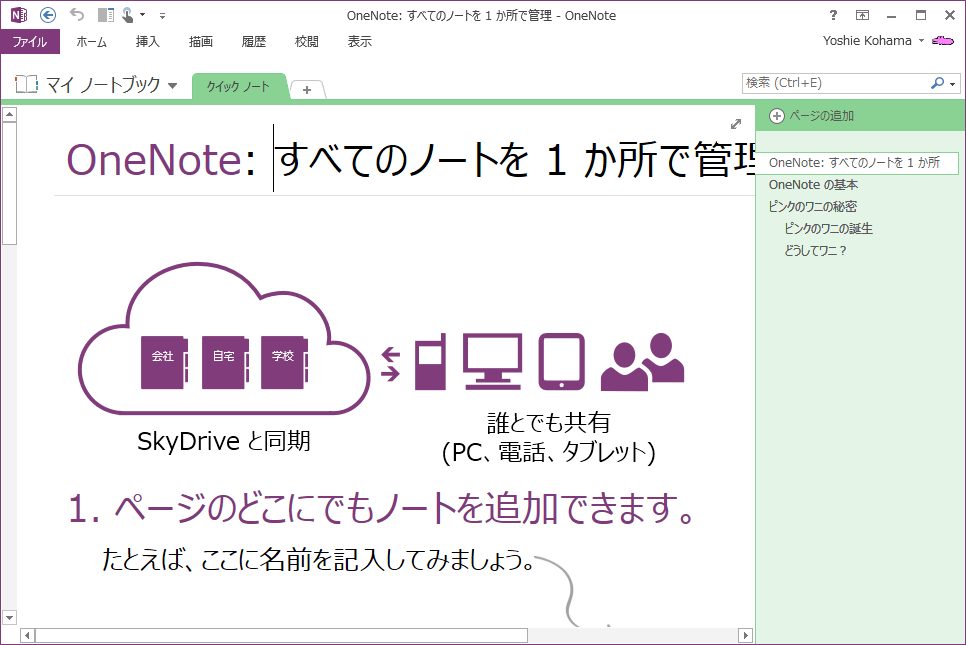 OneNoteの表示オプション