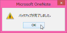 すると、バックアップが完了したというメッセージが表示されるので[OK]ボタンをクリックします。