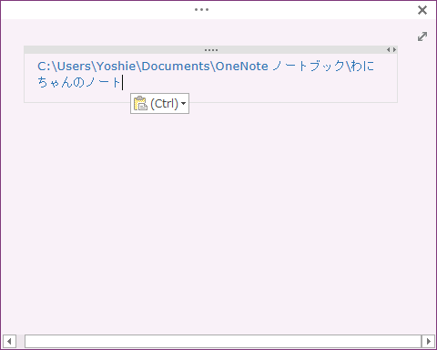 - クイックノートを開いて貼り付けると、パスが貼り付けられました。