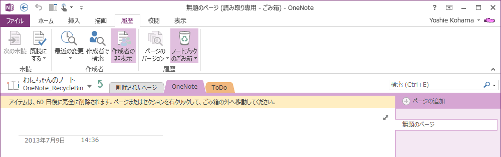 なお、セクショングループを削除した場合、そのセクショングループに存在していたセクションとそのページがノートブックのごみ箱に移動され、セクショングループは完全削除されます。