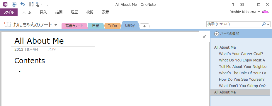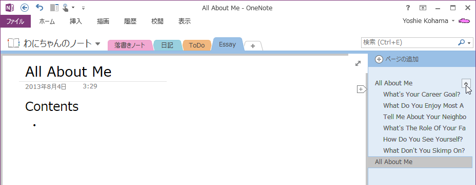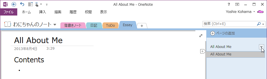 サブページとそれに属するページはページグループとして認識されます。OneNote 2013でページグループ単位で折りたたんだり展開できたりすることが可能です。サブページのレベルを上げてその下のサブページ群の親ページにすることもできます。