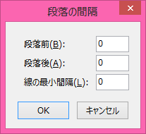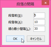 - [段落の間隔]ダイアログボックスで、段落前、段落後、線の最小間隔(行ピッチ)の値を指定して[OK]ボタンをクリックします。