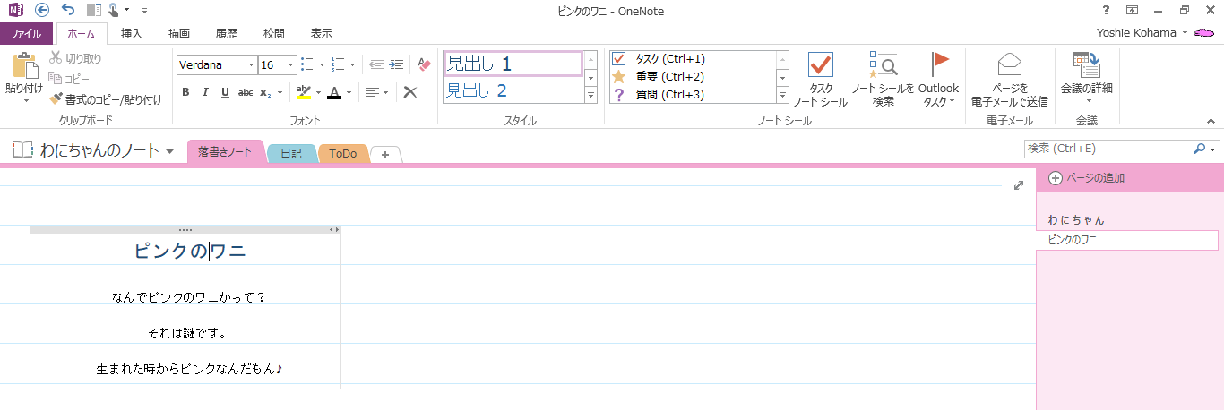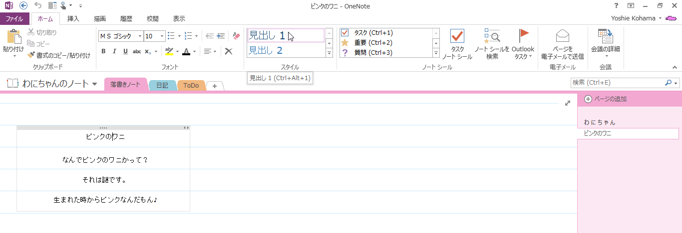 OneNoteでも見出しスタイルを適用できます。「見出し1」~「見出し6」まであります。