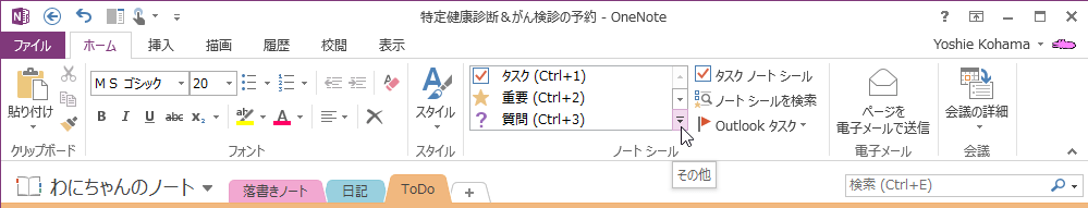 - [ホーム]タブの[ノートシール]の[その他]をクリックします。