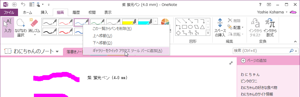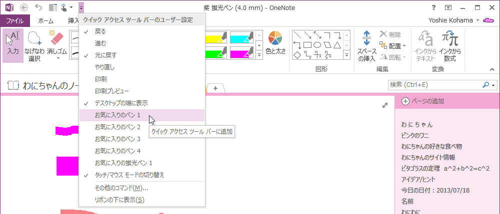 個々のお気に入りのペンをクイックアクセスツールバーに追加