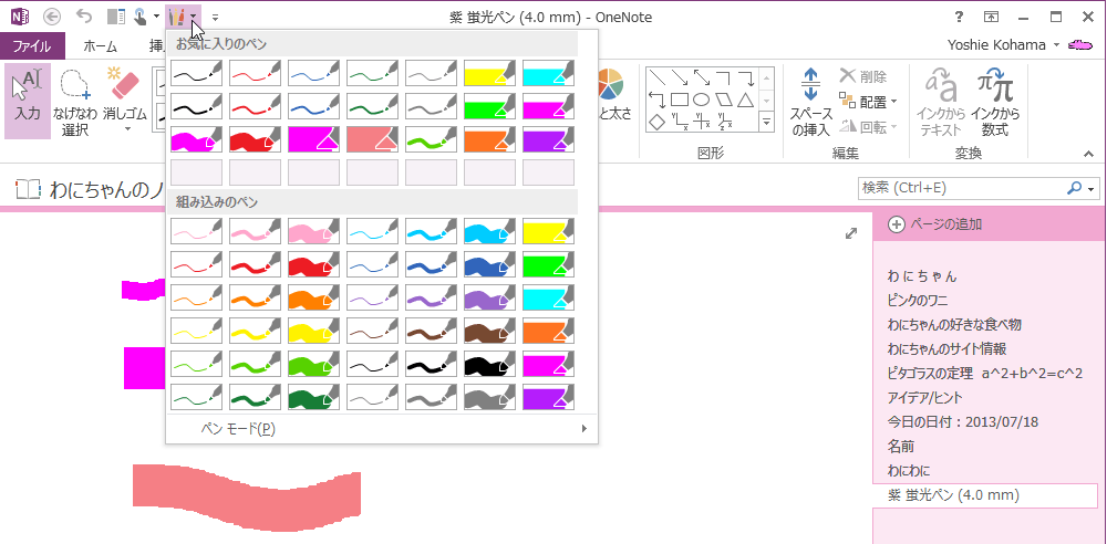 クイックアクセスツールバーにお気に入りのペンを追加するには