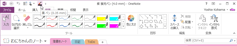 - クイックアクセスツールバーに[インクのスタイル]ボタンが追加されました。