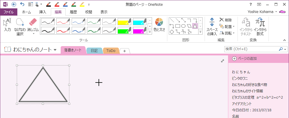 OneNote 2013既定では、図形を描くと入力モードに切り替わりますが、同じ図形を繰り返して描画するには、描画モードをロックするとOKです。[描画]タブを開き、[図形]ギャラリーの▼をクリックして、[描画モードのロック]を選択します。