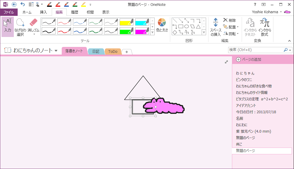 OneNote 2013で対象となるオブジェクトを選択して[描画]タブを開き、[編集]グループの[配置]を選択して、一覧から配置方法を選択します。配置方法は、前面、最前面、背面、最背面の4通りあります。