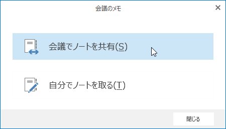 - 会議のメモを他のユーザーと共有するには、[会議でノートを共有] をクリックします。