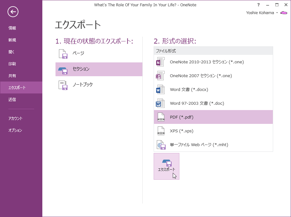 現在のセクションをPDF形式でエクスポート