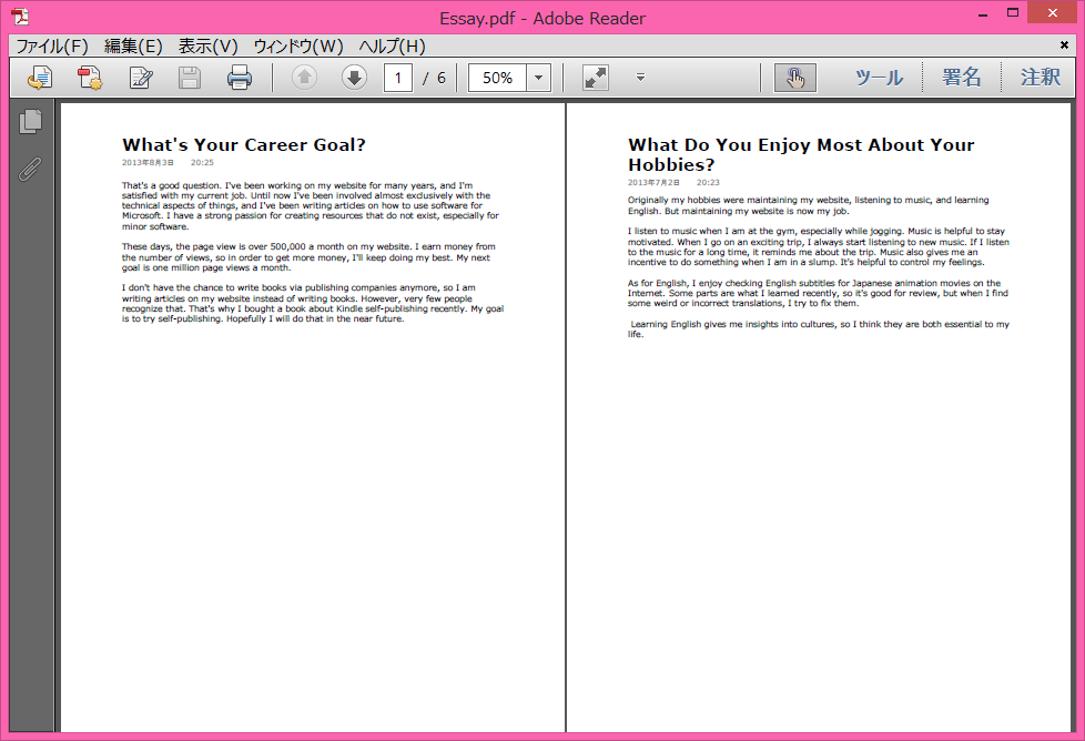 - エクスポートされたPDFファイルは以下の図のようになります。