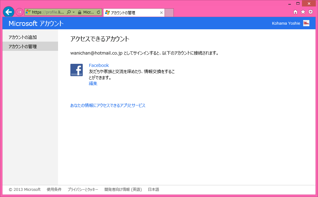 - Microsoftアカウントが表示されました。