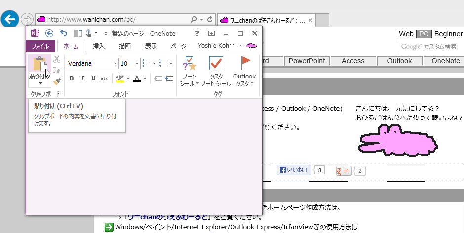 OneNote 2013の[画面の領域]を使ってWebページの一部を取り込むのではなく、クリップボードにコピーしてテキストはテキスト、画像は画像としてOneNoteに貼り付ける方法について説明します。