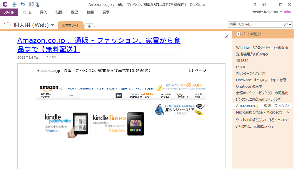 - OneNoteのページに取り込んだ部分が挿入されました。