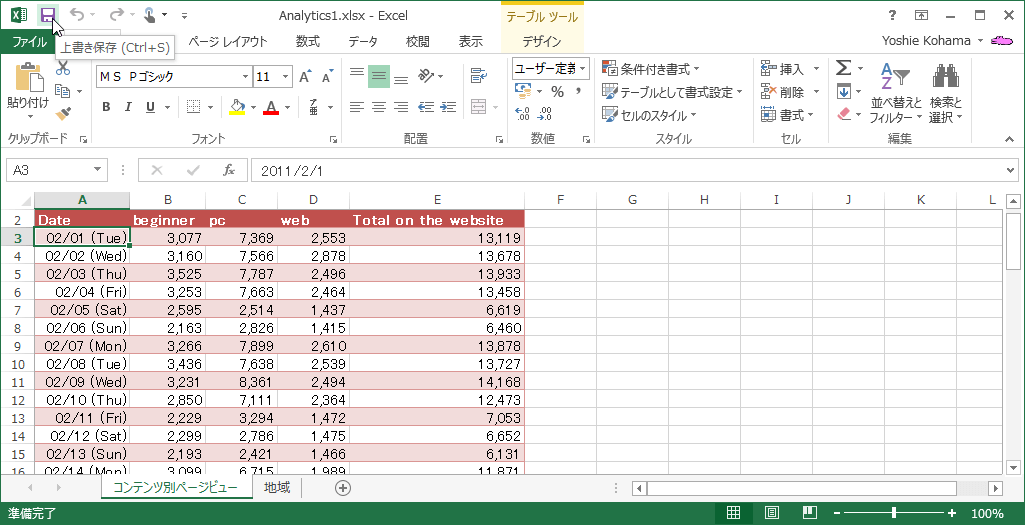- Excelで編集したあと[上書き保存]をクリックします。
