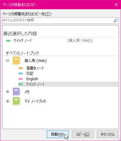 - 移動先を選択して[移動]ボタンをクリックします。