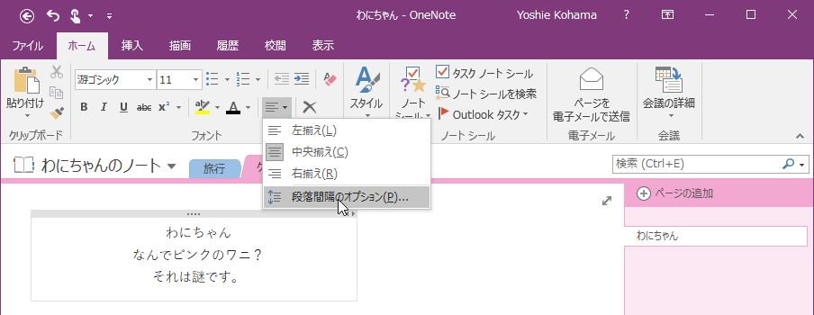 段落の前または後ろに間隔を追加するには、[ホーム]タブの[段落]グループにある[段落の配置]ボタンをクリックして、[段落間隔のオプション]を選択し、段落前や段落後の間隔をポイント単位で指定します。