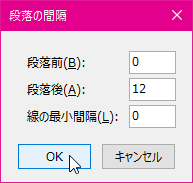 - 段落後のボックスに「12」と入力して[OK]ボタンをクリックします。