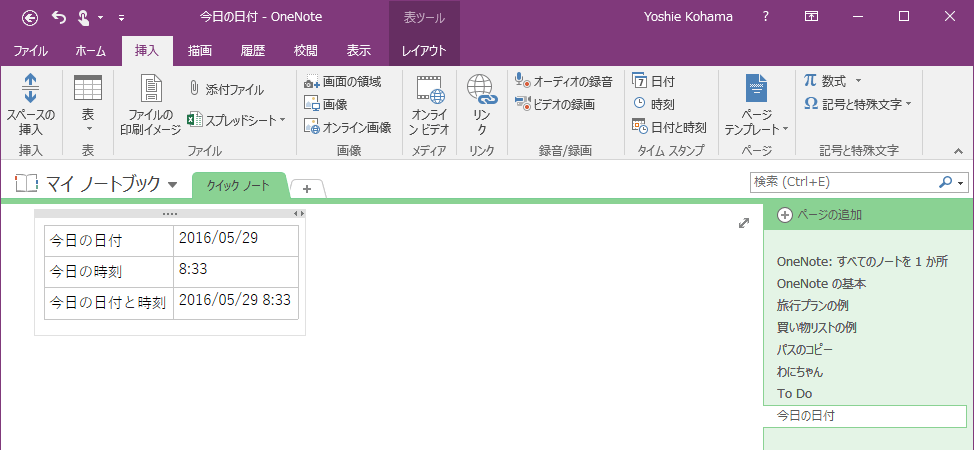 日付と時刻の挿入