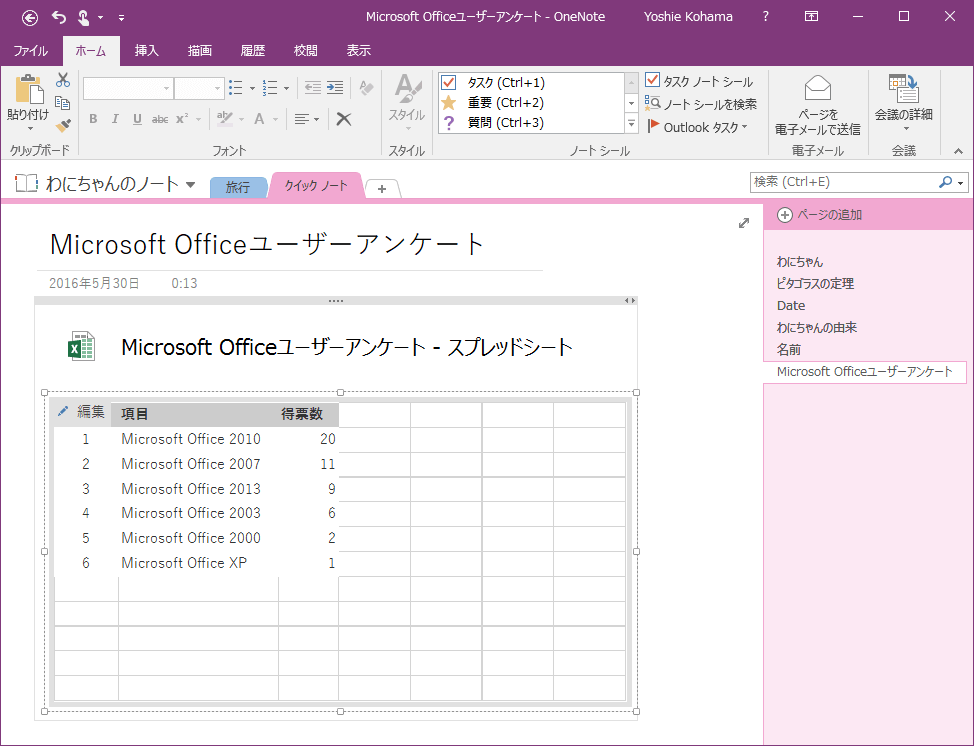 OneNoteには表計算機能やグラフ作成機能がありません。これを実現するためには、Excelスプレッドシートに変換するとよいでしょう。対象となる表内にカーソルを移動し、[表ツール]の[レイアウト]タブを開いて、[Excelスプレッドシートに変換]を選択します。