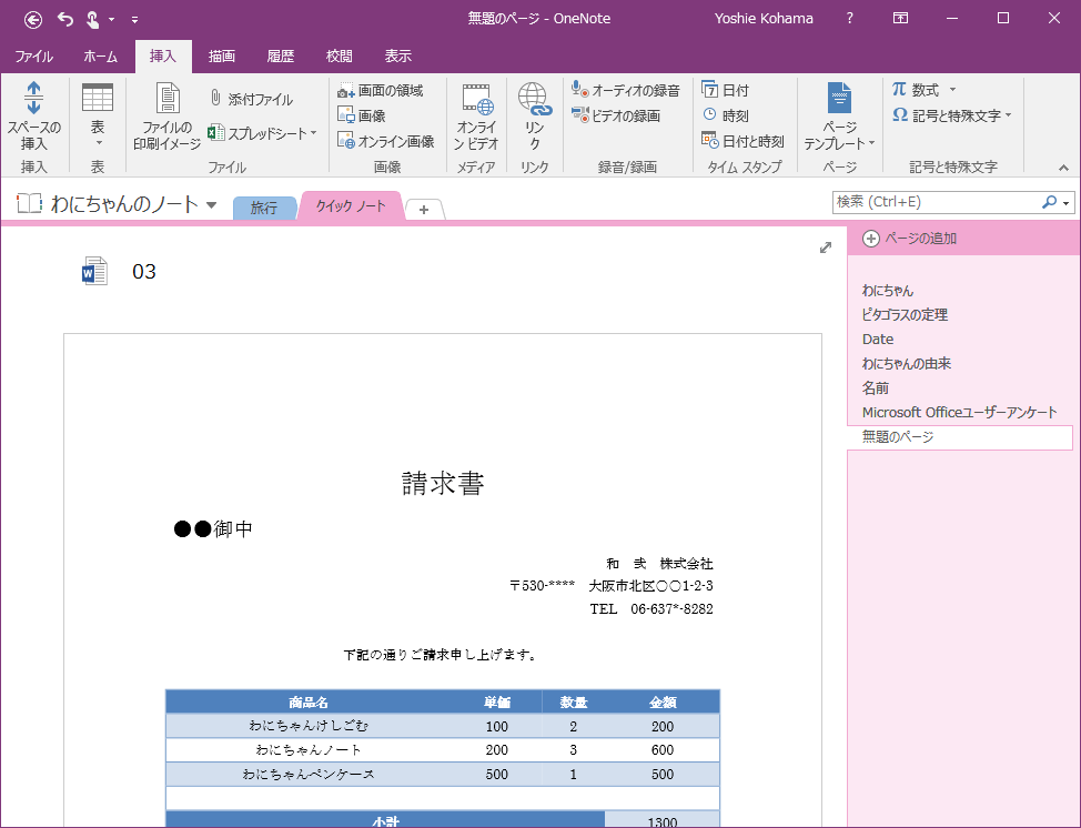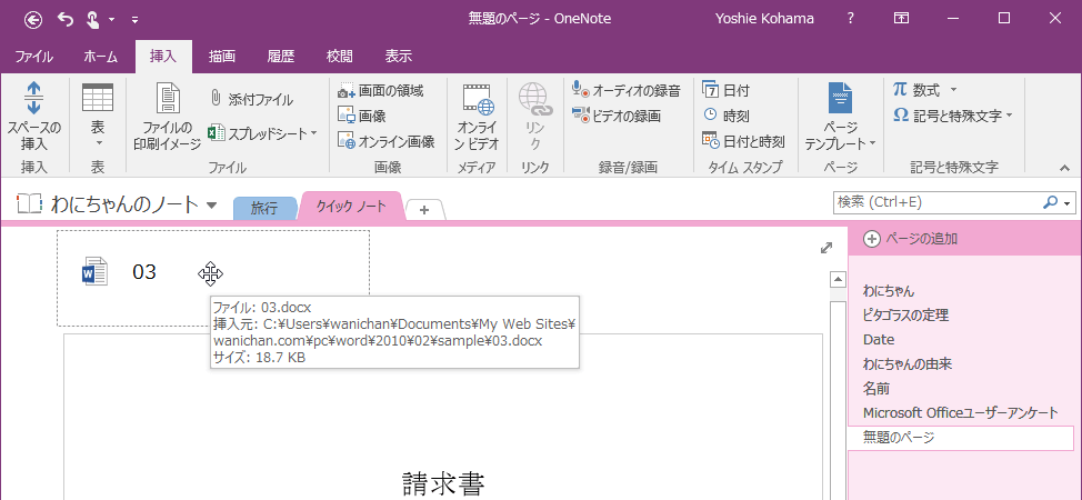 Word 2010コーナーに用意されているサンプルファイル『03.docx -18.79 KB (19242 バイト)』の印刷イメージを、OneNoteのページに追加してみましょう。